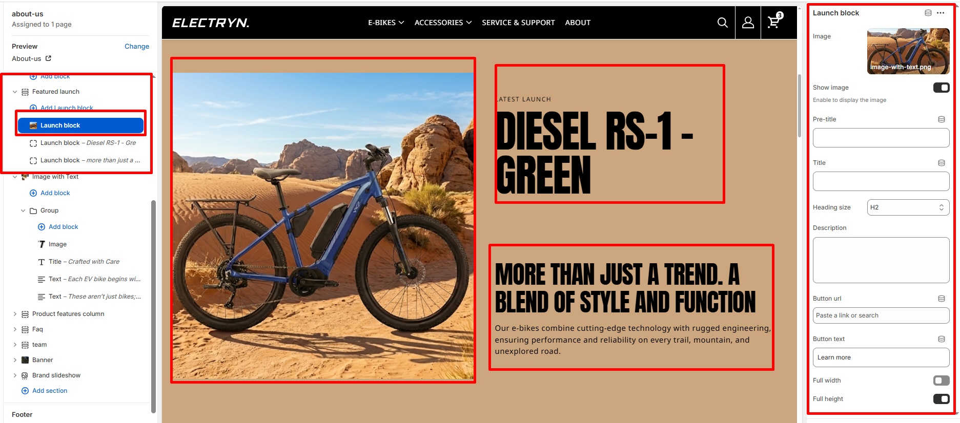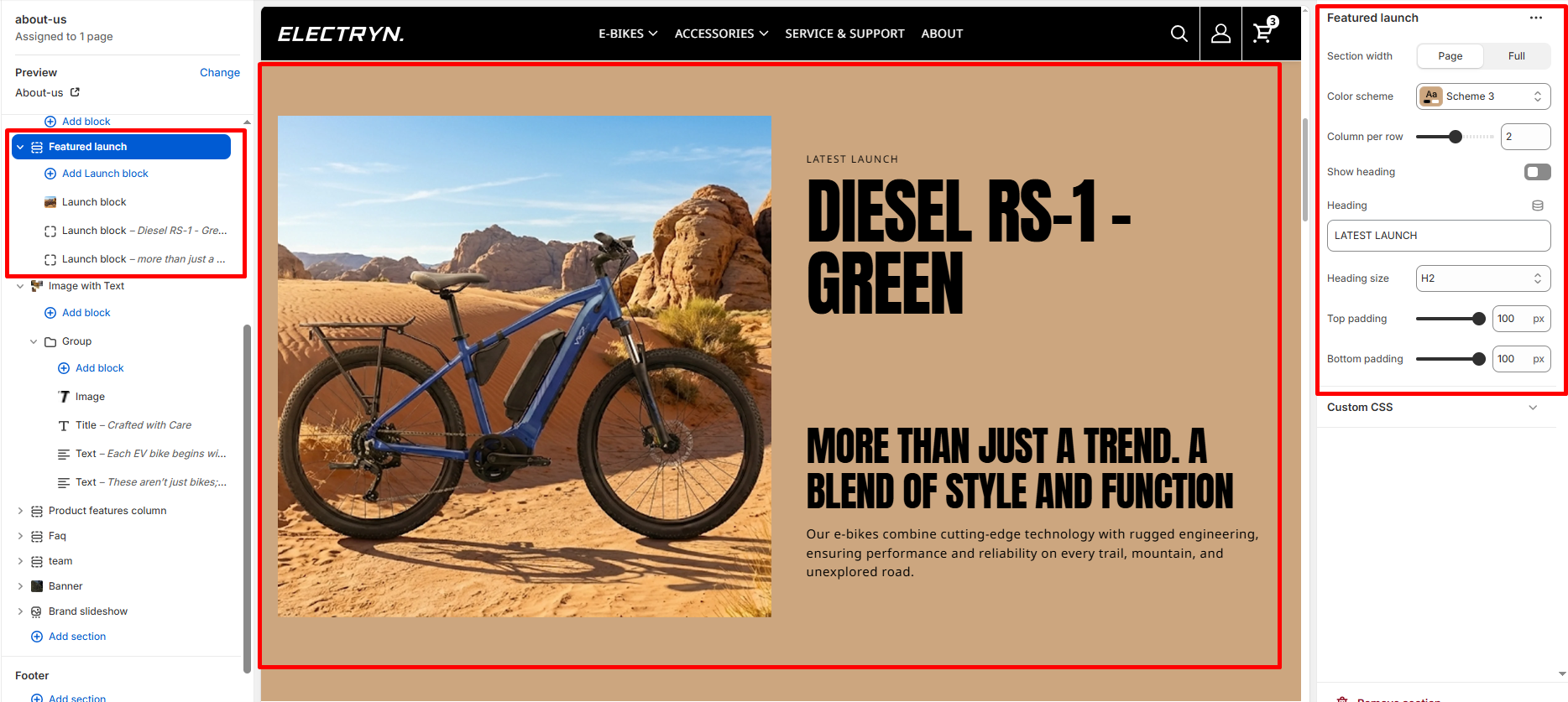 A Featured Launch section showcases new product launches or featured content in a flexible grid layout. This section is ideal for highlighting new products, special collections, or promotional content with rich imagery and compelling text. Each launch card can be customized with images, headings, descriptions, and call-to-action buttons, creating an engaging presentation for visitors.