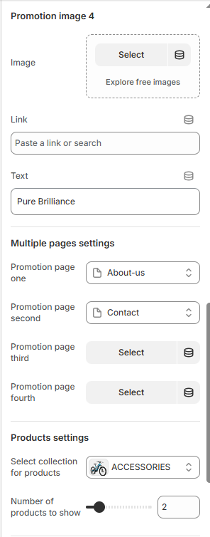 Select up to four pages to feature. Useful for linking to About, Contact, FAQs, or Policy pages.