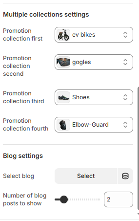 Select up to four different collections to feature. Each appears with its name and thumbnail (if available).