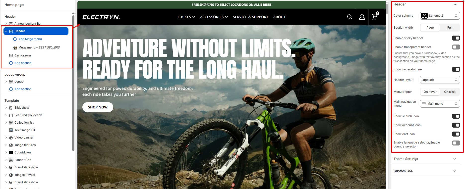 Tip: Ensure the first homepage section is a banner or slideshow for best appearance.