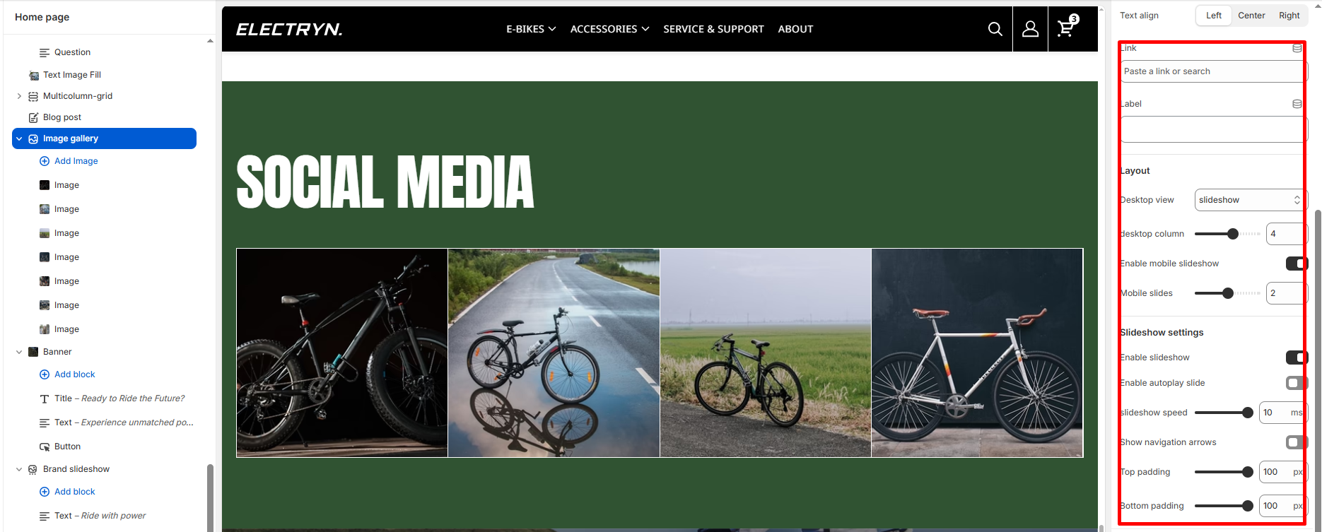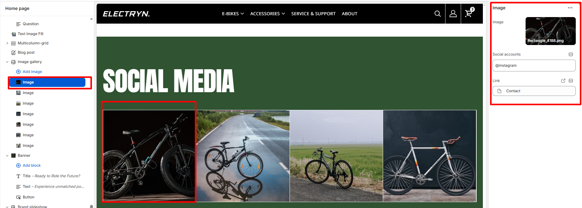 The Image Gallery  section is designed to visually highlight your brand’s Instagram presence by featuring images, headlines, and a call-to-action (CTA). It’s a perfect place to showcase lifestyle imagery, community engagement, or social proof directly from your Instagram feed or curated media.