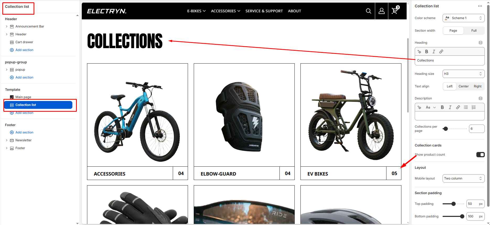 Select how many collection cards appear per row on desktop view.