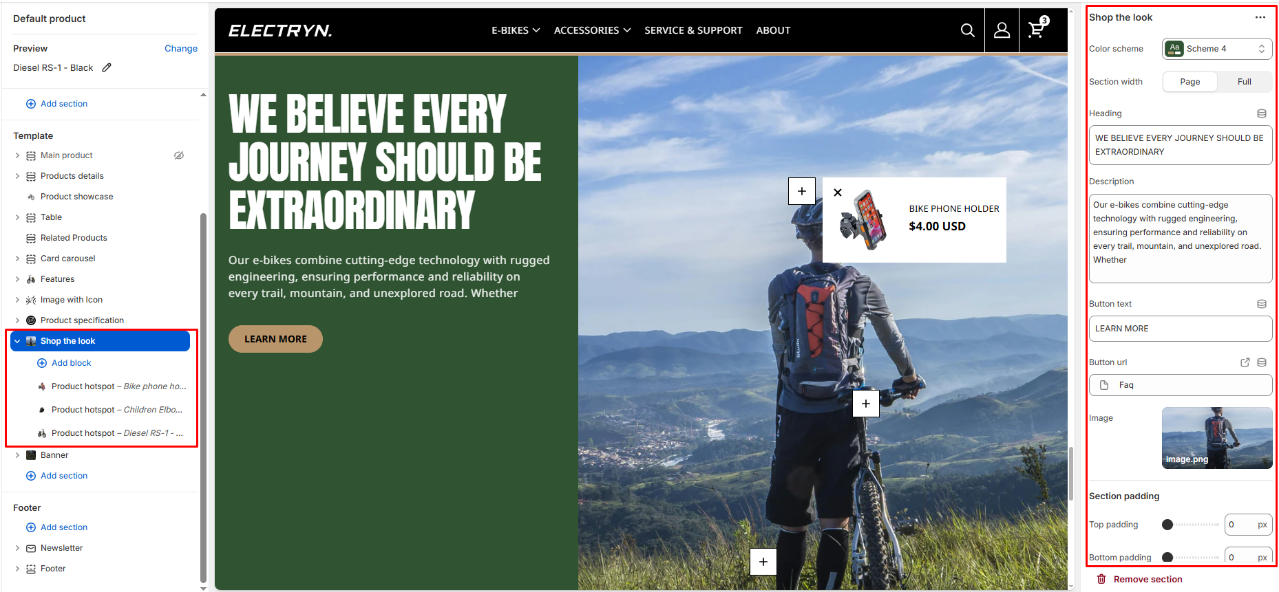 Select any product to showcase in the section. This product can be changed/removed at any time using the change button.